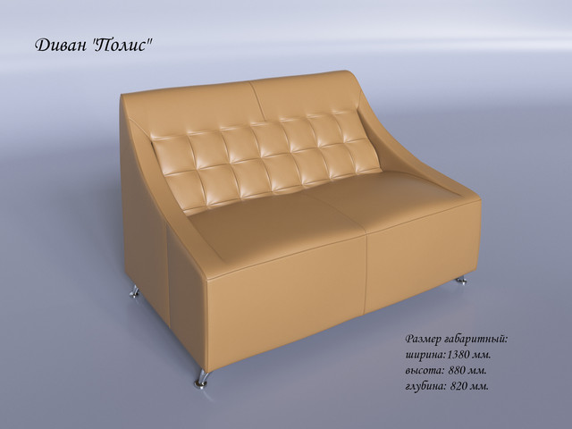 Диван Поліс, солідний офісний диван із характерною високою спинкою і витонченими хромованими ніжками, ідеально впишеться в інтер'єр будь-якого офісу або кабінету керівника.Стругі лінії, ідеальна геометрія та висока якість створять необхідний Вам комфорт.