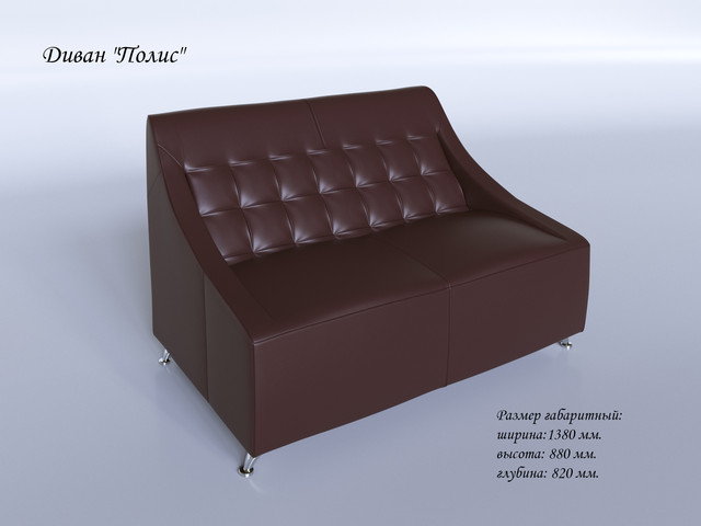 Диван Поліс, солідний офісний диван із характерною високою спинкою і витонченими хромованими ніжками, ідеально впишеться в інтер'єр будь-якого офісу або кабінету керівника.Стругі лінії, ідеальна геометрія та висока якість створять необхідний Вам комфорт.