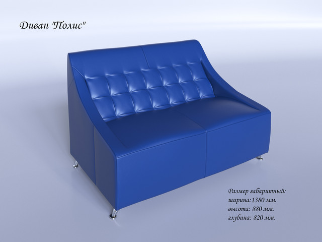 Диван Поліс, солідний офісний диван із характерною високою спинкою і витонченими хромованими ніжками, ідеально впишеться в інтер'єр будь-якого офісу або кабінету керівника.Стругі лінії, ідеальна геометрія та висока якість створять необхідний Вам комфорт.