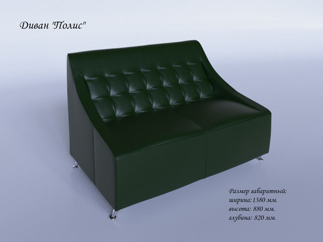 Диван Поліс, солідний офісний диван із характерною високою спинкою і витонченими хромованими ніжками, ідеально впишеться в інтер'єр будь-якого офісу або кабінету керівника.Стругі лінії, ідеальна геометрія та висока якість створять необхідний Вам комфорт.
